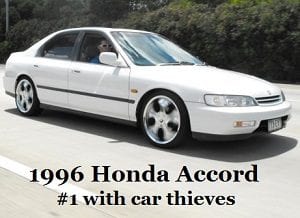 The list shows thieves chose Hondas #1 and #2. The Japanese cars are followed by American-made pickup trucks. Ford pickups finished in third place, while Chevys came in fourth.